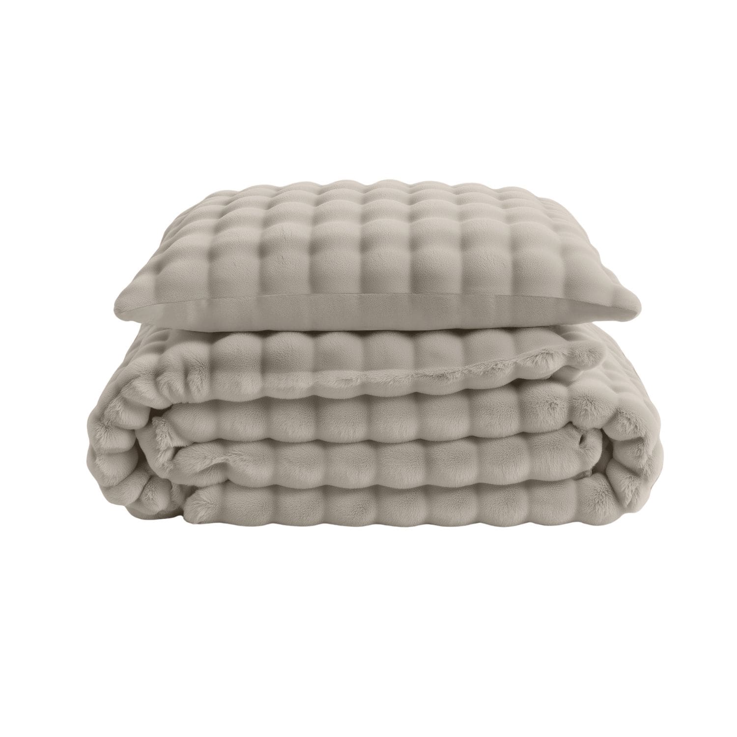 Sleeptime Flanel Fleece Dekbedovertrek Pompom beige – 140×200/220