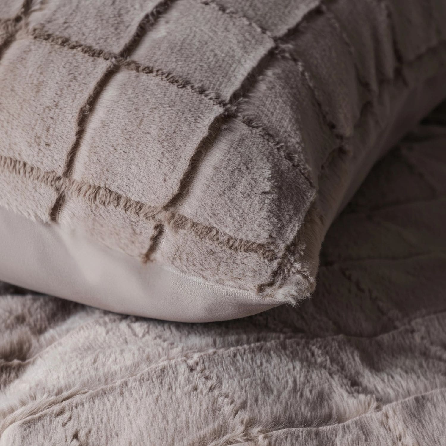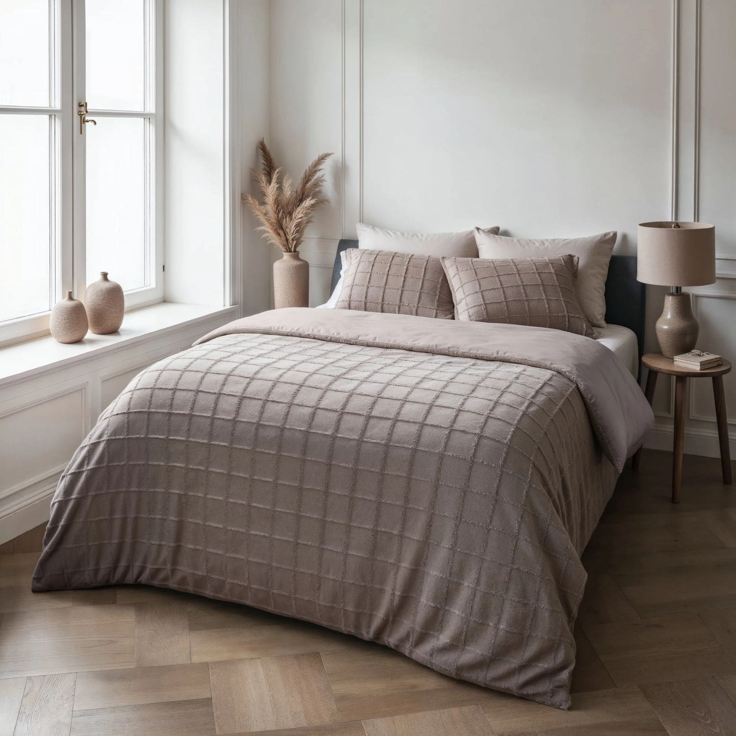 Sleeptime Teddy Dekbedovertrek Fur Check – 200×200/220 cm – Taupe