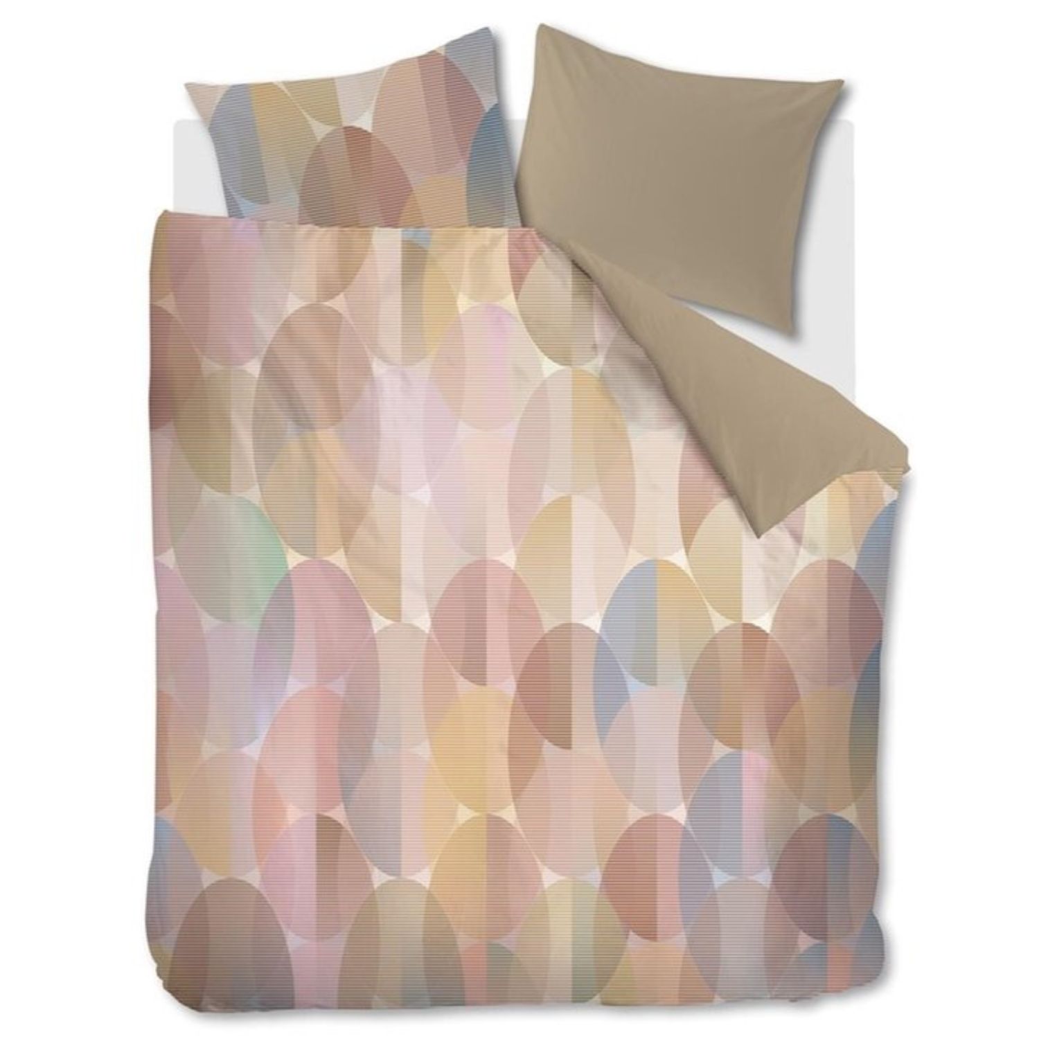 Het dekbedovertrek New Dawn van Beddinghouse Dutch Design is een ware eye-catcher met zijn elegante ovale vormen, die zweven in transparante lagen. De verfijnde strepen en subtiele kleurovergangen geven de print een gevoel van diepte en beweging. Met frisse zachte kleuren zoals roze, blauw, groen, taupe en geel, is dekbedovertrek New Dawn helemaal in lijn met de laatste trends. De achterzijde van het overtrek heeft een rustige, effen zandkleur.Hoogwaardige kwaliteitDit dekbedovertrek is samengesteld uit 70% lyocell en 30% katoensatijn. Lyocell wordt gemaakt van cellulosevezels van beukenbomen en is een duurzame keuze die minder water, bestrijdingsmiddelen en kunstmest vereist. De stof is antibacterieel, vochtabsorberend en temperatuurregulerend, waardoor het overtrek je koel houdt in de zomer en warm in de winter.Extra lange instopstrookHet overtrek heeft een dubbele instopstrook en een totale lengte van 260 cm. Door deze extra lengte kan het dekbedovertrek gemakkelijk onder het matras worden gestopt en is het geschikt voor hoge matrassen. Het dekbedovertrek is passend voor dekbedden van 200 cm, 210 cm of 220 cm.