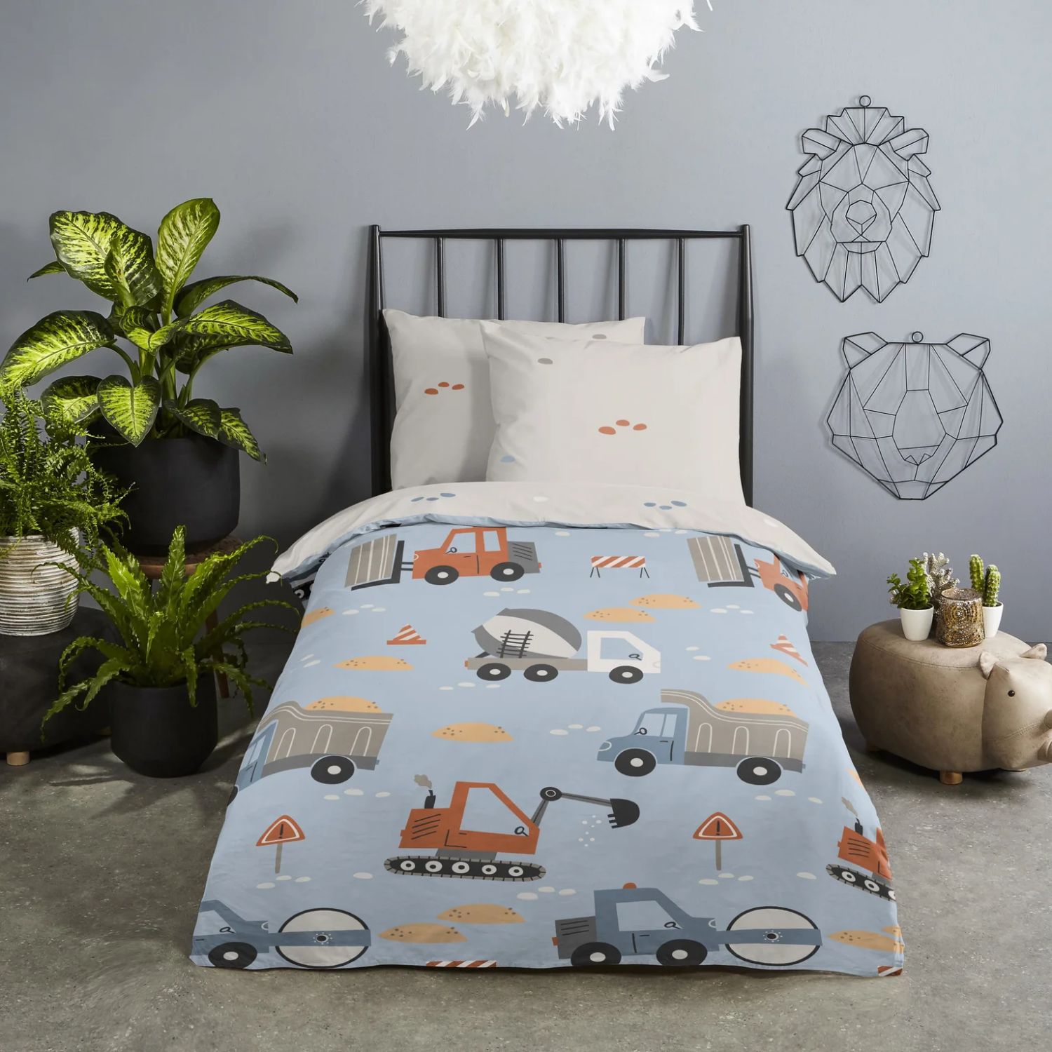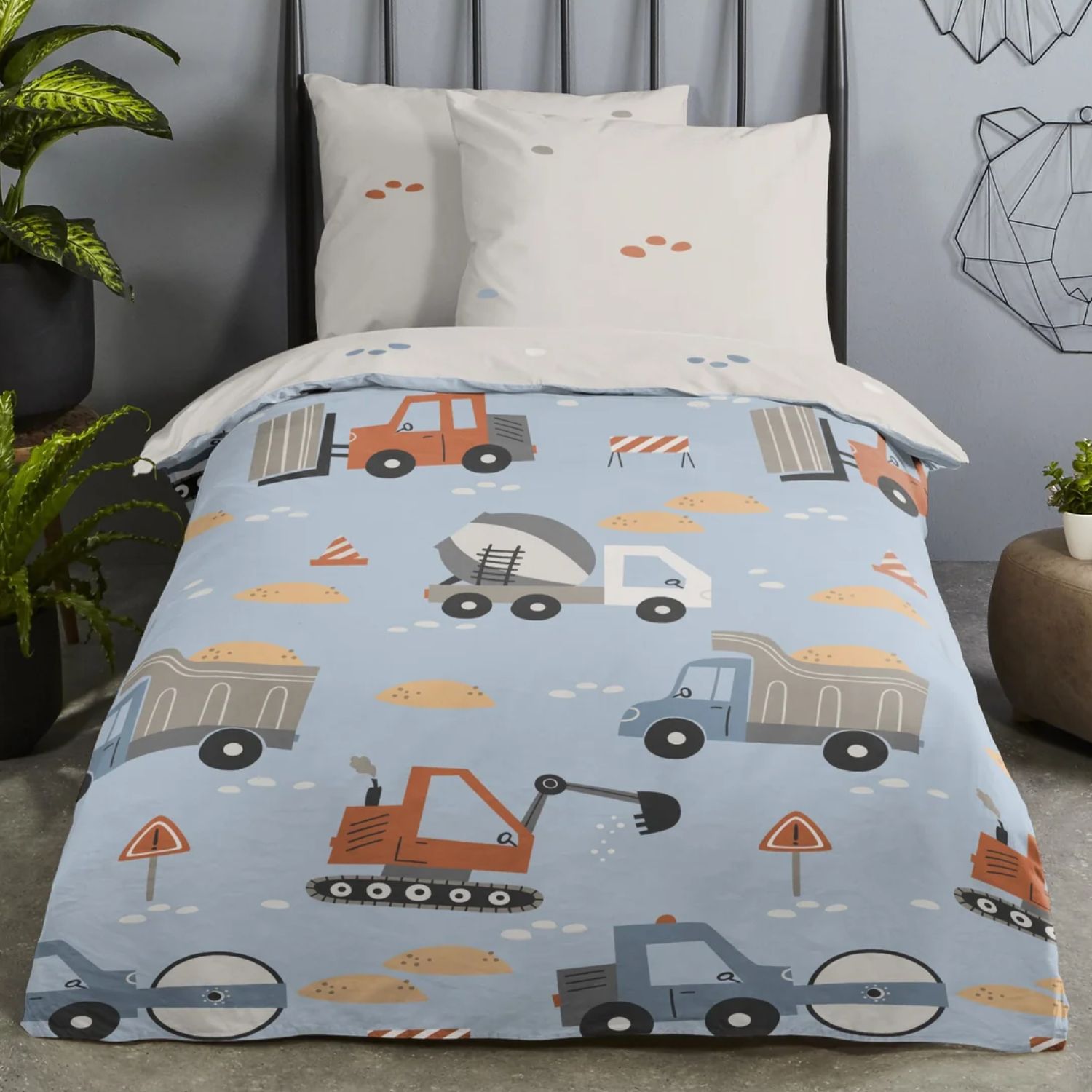 Good Morning Kinderdekbedovertrek Mack – Voertuigen – Blauw