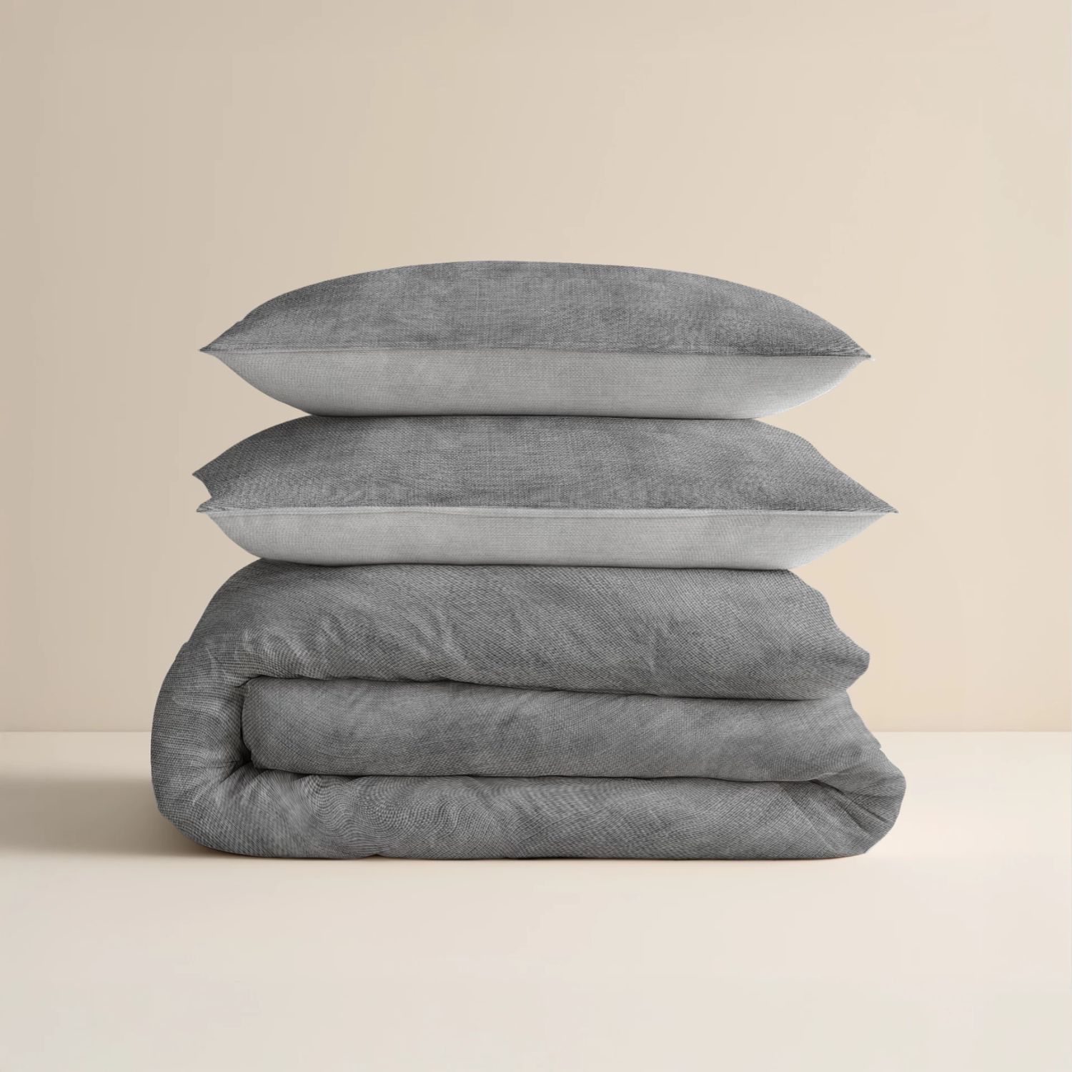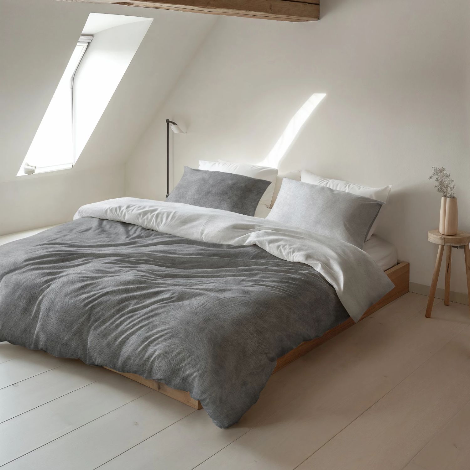Sleeptime Dekbedovertrek Flanel Washed Grijs – 200×200/220 cm – Super Zacht & Heerlijk Warm