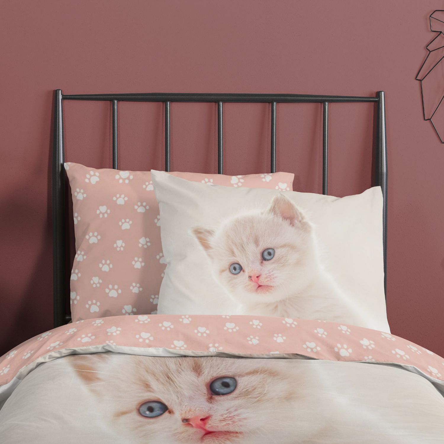 Het kinderdekbedovertrek Catty van Good Morning met een schattige poezenprint in de kleur ecru brengt een lieve en rustige sfeer in de kinderkamer. Het overtrek is gemaakt van 100% katoen, een natuurlijke stof die ademend en vochtabsorberend is en zacht en soepel aanvoelt. Hierdoor biedt het een comfortabel slaapklimaat gedurende het hele jaar: verkoelend in de zomer en behaaglijk warm in de winter.