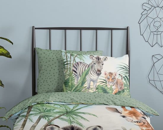 Kinderdekbedovertrek “Thabo” van Good Morning met jungle dieren, in de kleur “Multi” is gemaakt van 100% katoen. Deze kwaliteit is ademend, vochtabsorberend en voelt zacht en soepel aan. Dit leuke kinderdekbedovertrek is een toevoeging aan iedere kinderkamer en is geschikt voor ieder jaargetijde. Het katoenen dekbedovertrek is heerlijk koel in de zomer en geeft warmte in de winter.