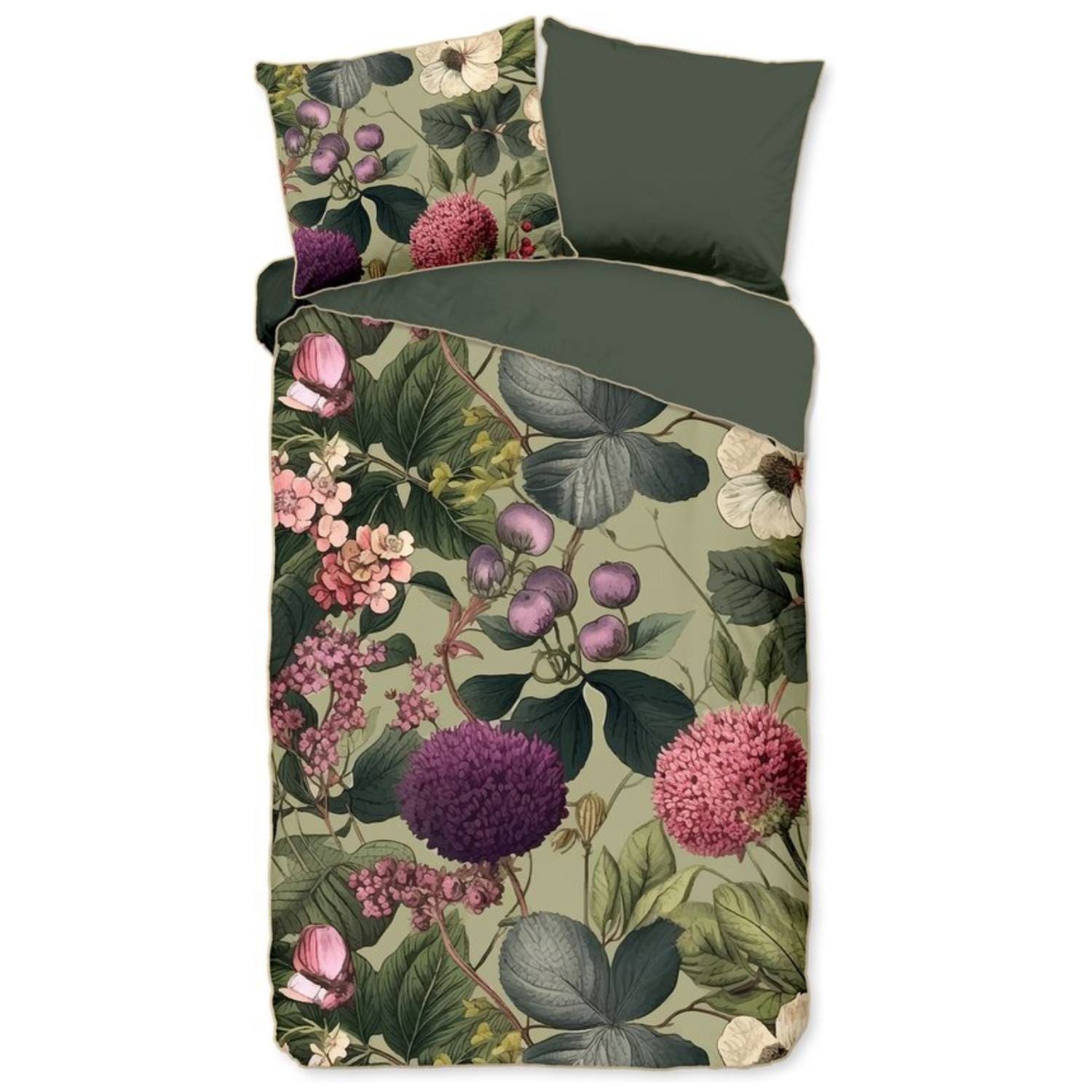 Satijnen dekbedovertrek “Onaz” van Descanso. Dit stijlvolle dekbedovertrek met bloemen & bladeren, in de kleur “Groen” is gemaakt van 100% katoen-satijn. Descanso dekbedovertrekken zijn luxueus, stijlvol en elegant! Aan de achterkant van een Descanso dekbedovertrek zit altijd een mooie, bijpassende uni kleur. Dekbedovertrekken en kussenslopen van Descanso zijn rondom voorzien van een luxe bies/ piping in een bijpassende kleur. Een Descanso dekbedovertrek geeft een luxe uitstraling aan uw slaapkamer!