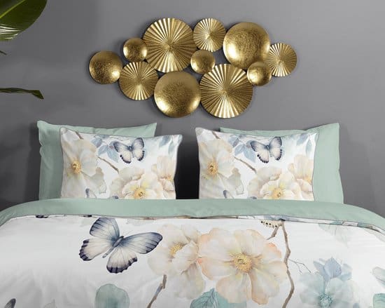 • Design: Adiwanya – bloemen- en vlinderprint in wit, met bijpassende uni‑achterkant en luxe piping