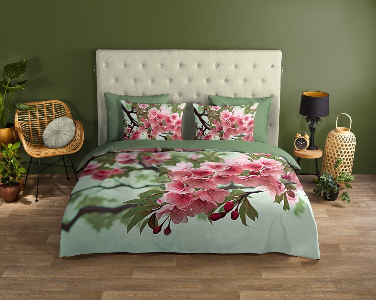 Good Morning Dekbedovertrek Bloemen Groen – 140×200/220 cm – Katoen