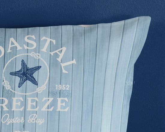 De “blauwe houten look” met zeesterprint en de tekst Coastal Breeze & Oyster Bay brengen direct de kust bij jou thuis. De effen witte achterzijde zorgt voor een rustgevend afwisselend design, waardoor je eenvoudig kunt mixen en matchen met andere bedlinnen kleuren.