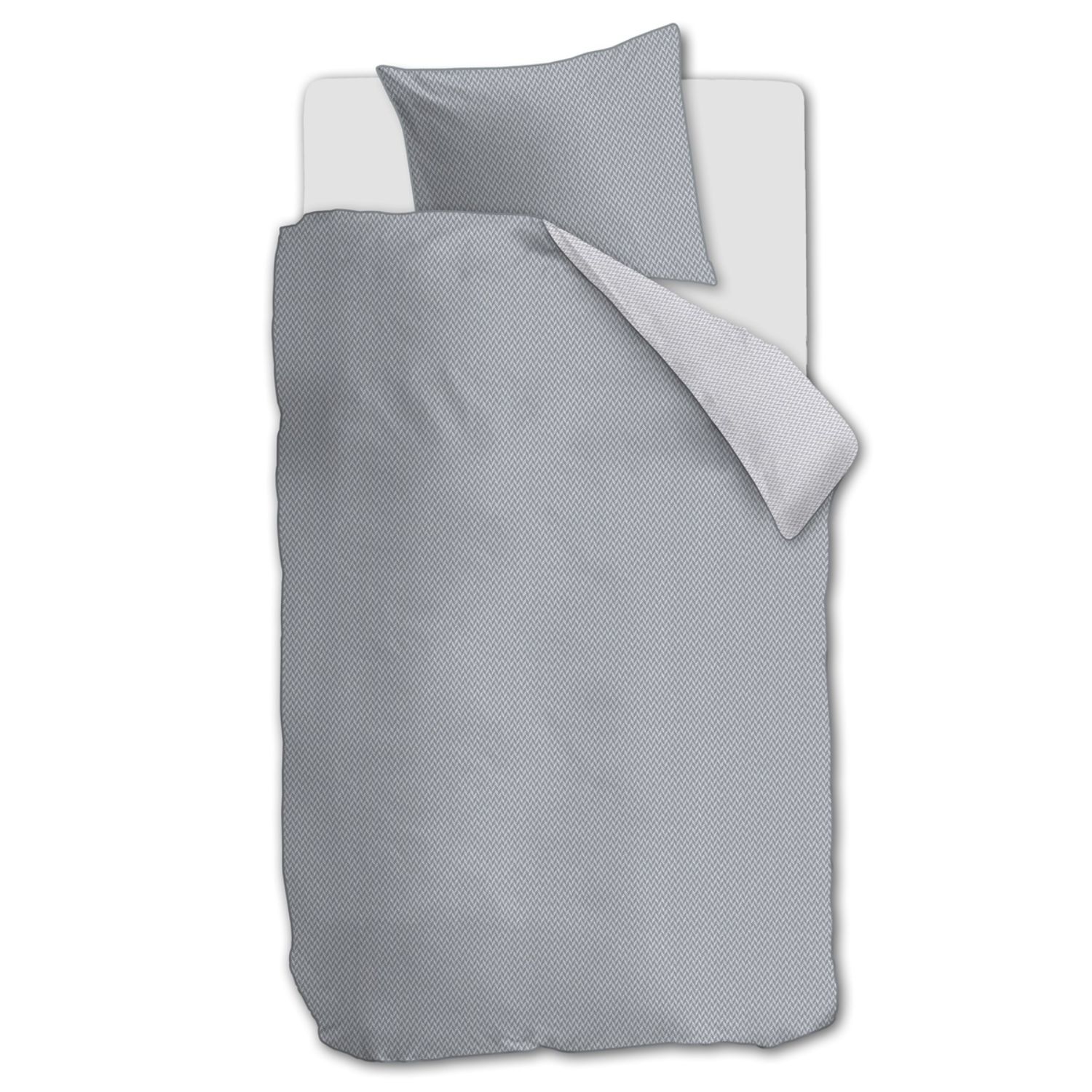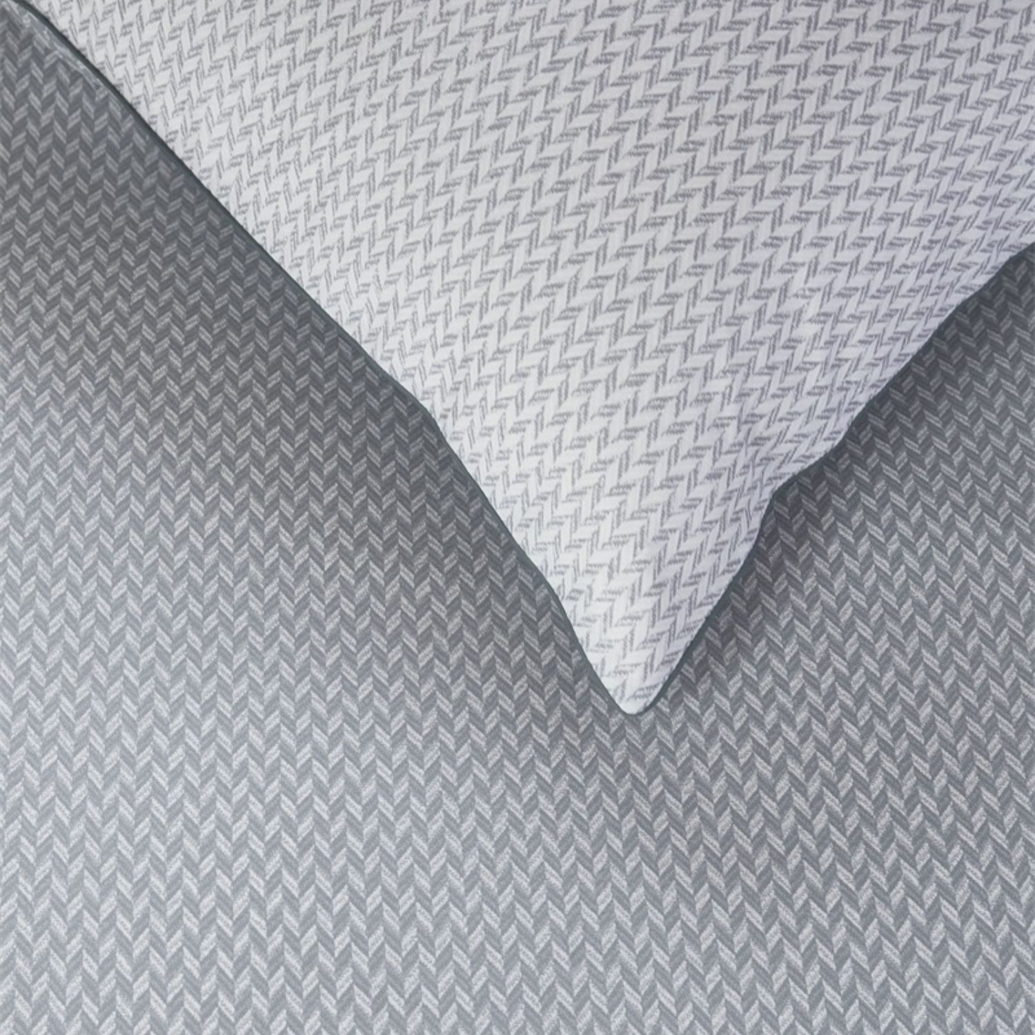 Effen grijs met subtiel visgraatmotief, voorzijde iets donkerder dan achterzijde