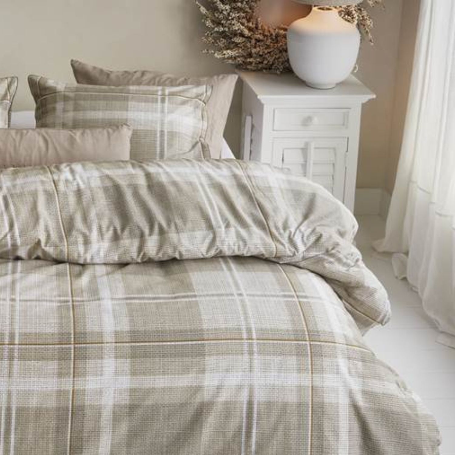 Het Rivièra Maison Tartan Check zand dekbedovertrek brengt warmte en een klassiek landelijke sfeer in de slaapkamer. Het tijdloze ruitdessin geeft het geheel een knusse, stijlvolle uitstraling die perfect past binnen een natuurlijke en rustige woonstijl. Een ideaal overtrek voor wie houdt van een huiselijke, authentieke ambiance.