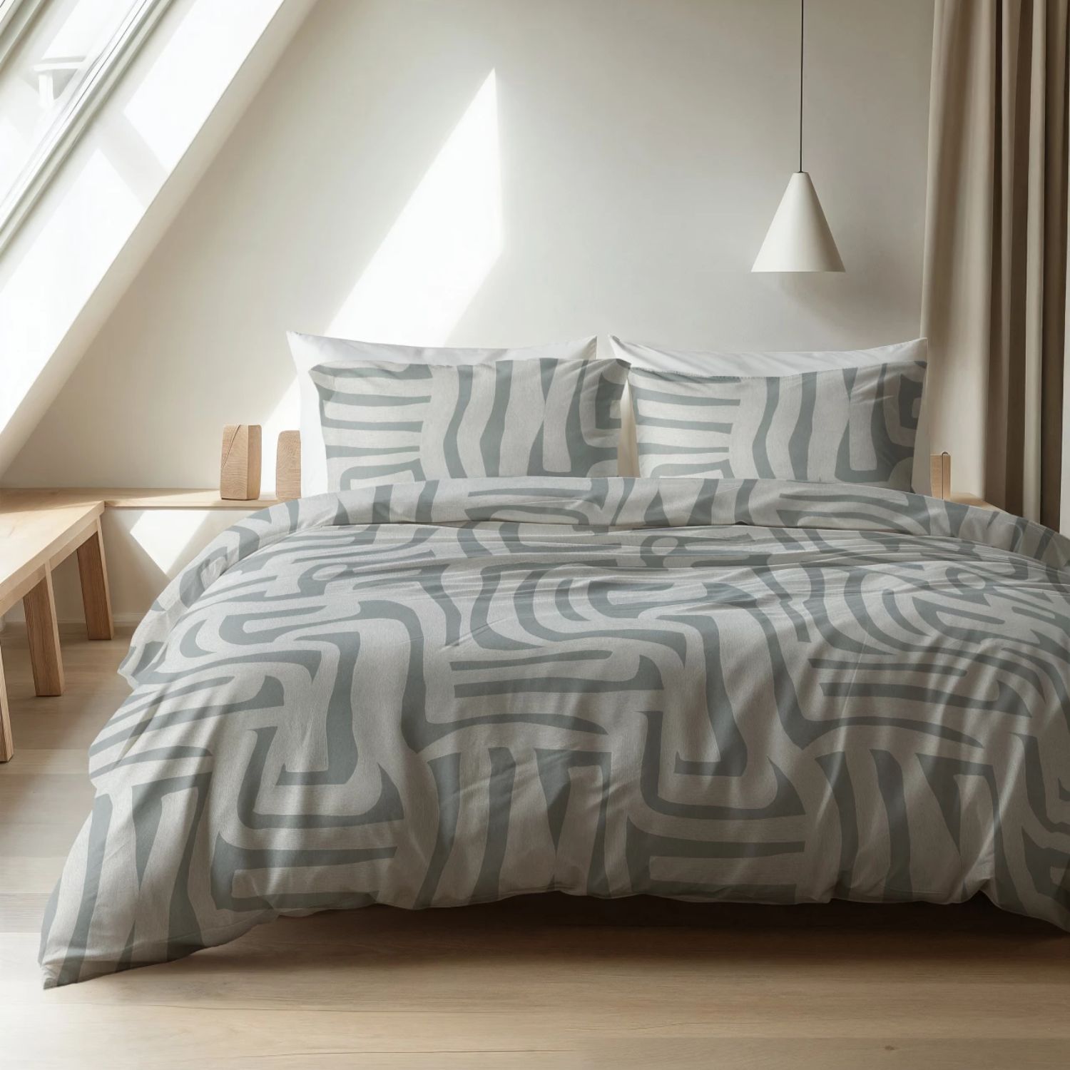Sleeptime Flanel Dekbedovertrek Danis – Groen/Grijs