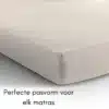 | Pasvorm | Rondom elastiek, tot 30 cm matrasdikte |