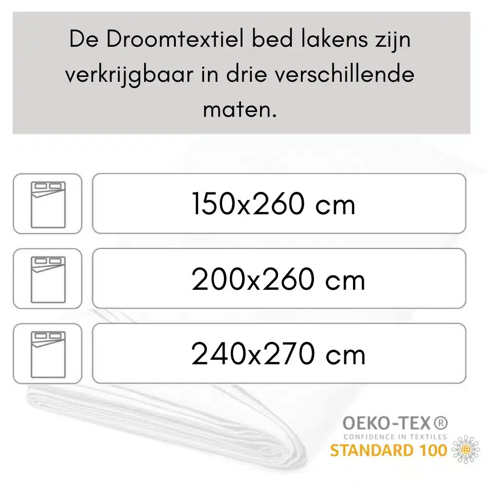 Bij Droomtextiel geloven we in producten die lang meegaan. De Sleeps katoenen lakens zijn niet alleen zacht en comfortabel, maar ook een bewuste keuze. Door te investeren in kwaliteit, verminder je wasbeurten en verklein je je ecologische voetafdruk. De OEKO-TEX certificering onderstreept onze belofte: slaapstijl die goed is voor jou én het milieu.