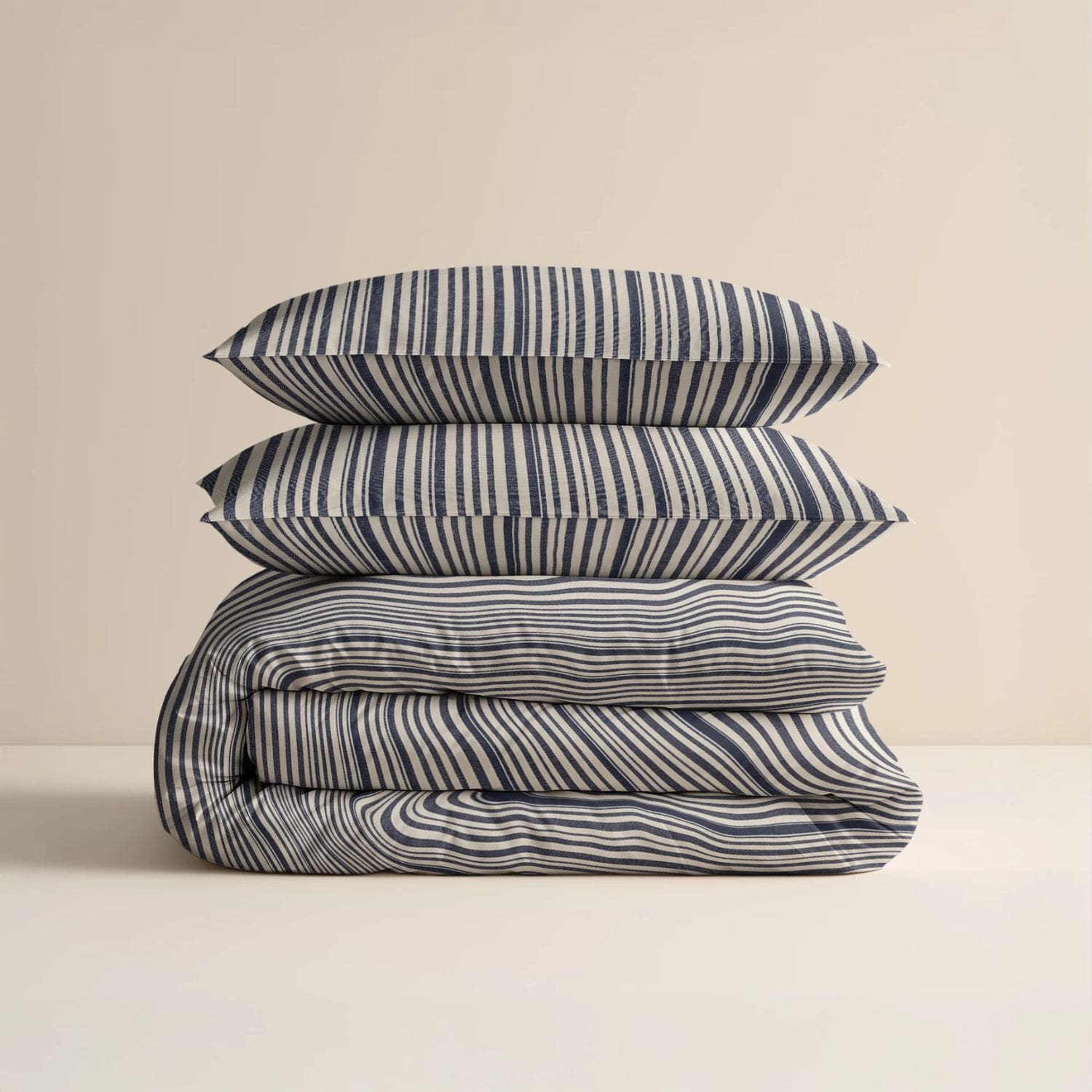 Met het Sleeptime Ragetta dekbedovertrek in diepblauw breng je een elegant en eigentijds patroon van verfijnde lijnen en vormen in je slaapkamer, voor een stijlvolle en rustige uitstraling. Het is gemaakt van 100% katoen (T128 kwaliteit), een natuurlijk materiaal dat zacht, ademend en vochtregulerend is. Zo geniet je elke nacht van een fris en comfortabel slaapklimaat. Dankzij de eigentijdse designs krijgt je slaapkamer bovendien direct een moderne en sfeervolle uitstraling.