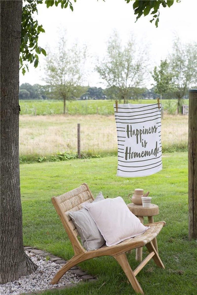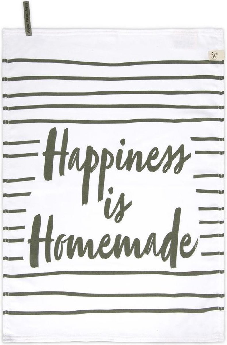 Het verfijnde gestreepte design in combinatie met de inspirerende tekst ‘Happiness is Homemade’ geeft een warme, eigen twist aan je keuken. Of je nu een strak modern interieur hebt of huiselijk-landelijke accenten, deze theedoek past perfect.